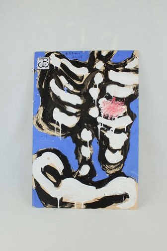 This double-sided piece is an attempt to depict the pain and discomfort of scoliosis. The twisted figure is covered by broad expressive strokes, and the plywood board is marred by twisted, scratched carvings.